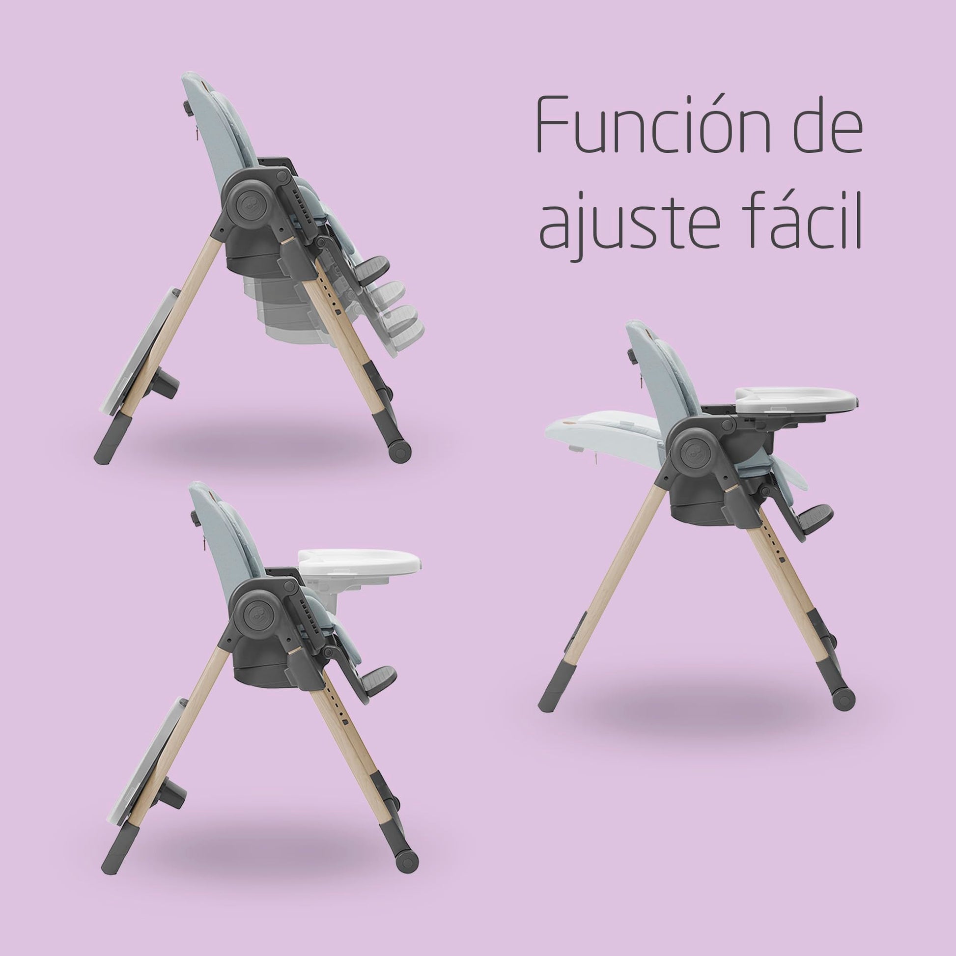 - FÁCIL DE USAR: la trona se desliza hacia arriba y hacia abajo para adaptarse perfectamente a tu mesa y te permite ajustar o retirar la bandeja con una sola mano, así como reclinar el respaldo
